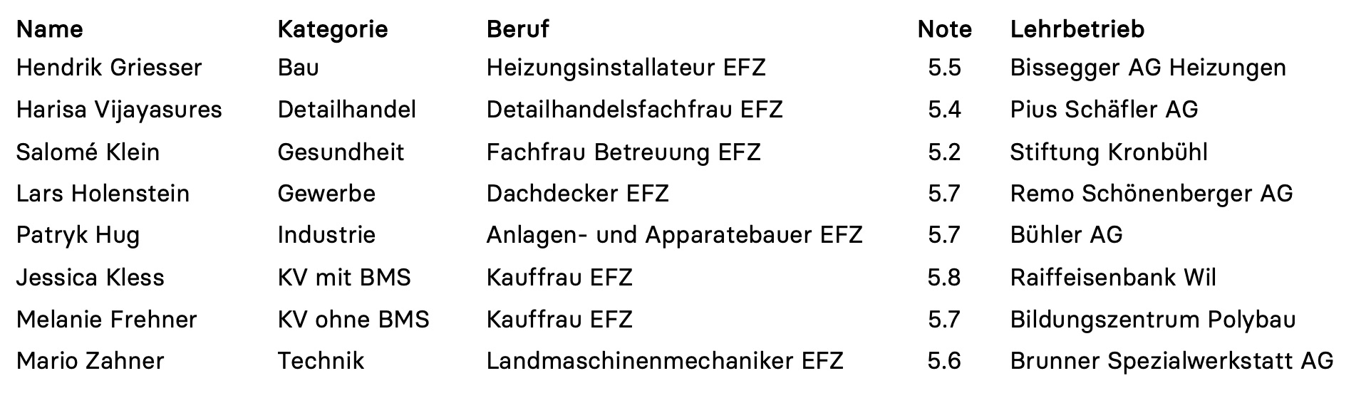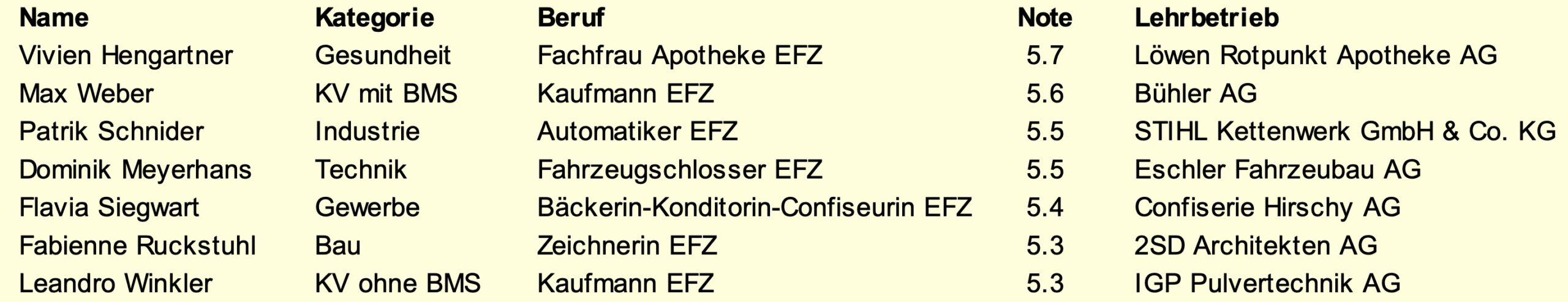 Für die besten Lernenden in jeder der acht Kategorien sowie